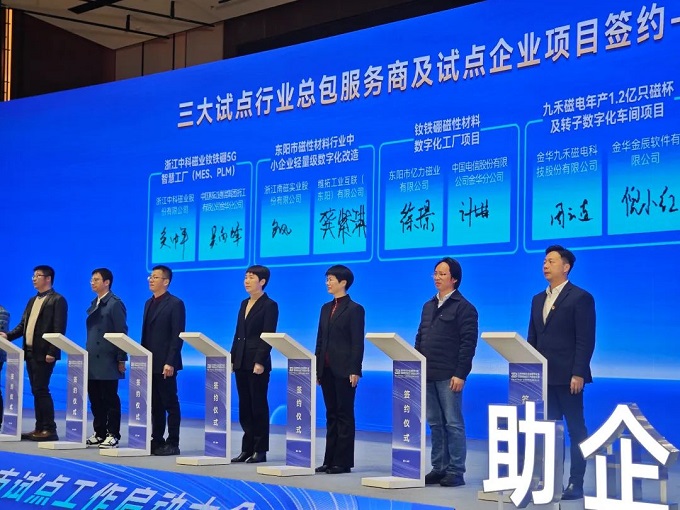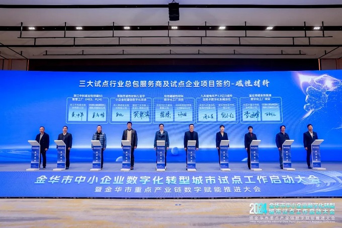 金華金辰作為此次金華市中小企業(yè)數(shù)字化轉(zhuǎn)型城市試點總包服務商(電動工具、磁性材料),倪小紅女士代表參與了此次啟動儀式。在啟動會上與磁性材料試點企業(yè)——九禾磁電進行項目簽約,率先開展數(shù)字化轉(zhuǎn)型實踐。標示著金華金辰在金華政府的支持下,將逐步探索出一條符合本地中小企業(yè)實際情況的數(shù)字化轉(zhuǎn)型特色之路,為中小企業(yè)數(shù)字化轉(zhuǎn)型提供有效金華經(jīng)驗!