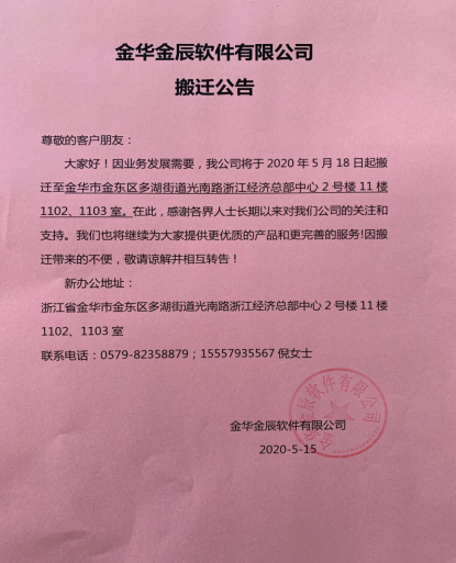 今天金辰搬家了, 18年的奮斗、18年的汗水、18年的執(zhí)著將在這里繼續(xù)前行;感謝所有金辰的客戶朋友們一路的支持和陪伴,我們將繼續(xù)為廣大新老客戶提供更多更優(yōu)質(zhì)更完善的服務,繼續(xù)書寫金華金辰的華彩篇章!