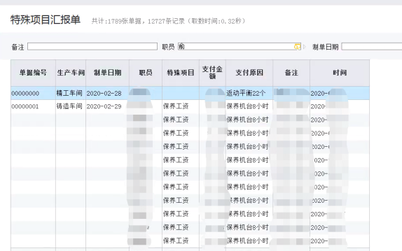 除車間的工序匯報(bào)以外,針對辦公室或其他獎(jiǎng)勵(lì)等機(jī)制的工資錄入,通過特殊項(xiàng)目匯報(bào)單進(jìn)行工資匯報(bào),單據(jù)中的項(xiàng)目可自定義,及時(shí)形成對應(yīng)的工資表。