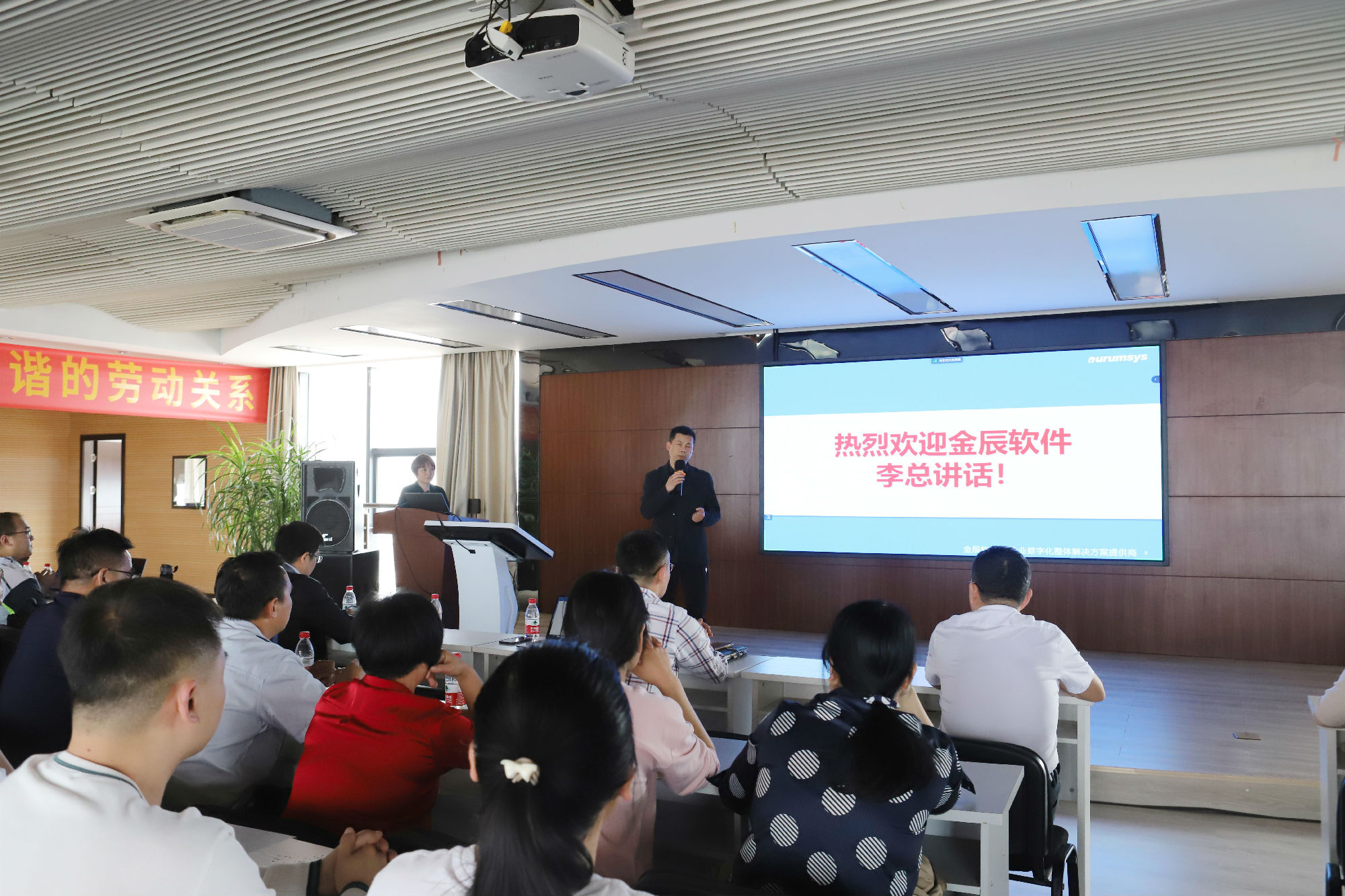 隨后,金華金辰軟件李總致辭中表達了完成該項目的信心與決心,李總認(rèn)為信息化實施不僅僅是企業(yè)應(yīng)用系統(tǒng)搭建信息化的過程,更是企業(yè)梳理流程、規(guī)范業(yè)務(wù)、改善管理的重要手段,是將軟件產(chǎn)品與企業(yè)業(yè)務(wù)結(jié)合的過程,可以幫助企業(yè)打造一支富有創(chuàng)新精神,精通企業(yè)管理與信息化的隊伍。