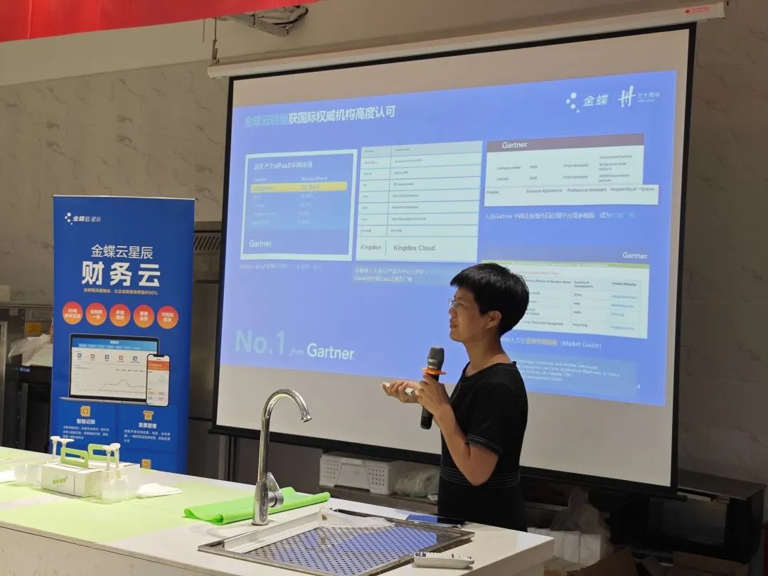 2點半,金辰軟件副總經(jīng)理倪小紅女士做了開場分享。簡單介紹了舉辦此次活動的初衷,以及金蝶云產品未來的發(fā)展。