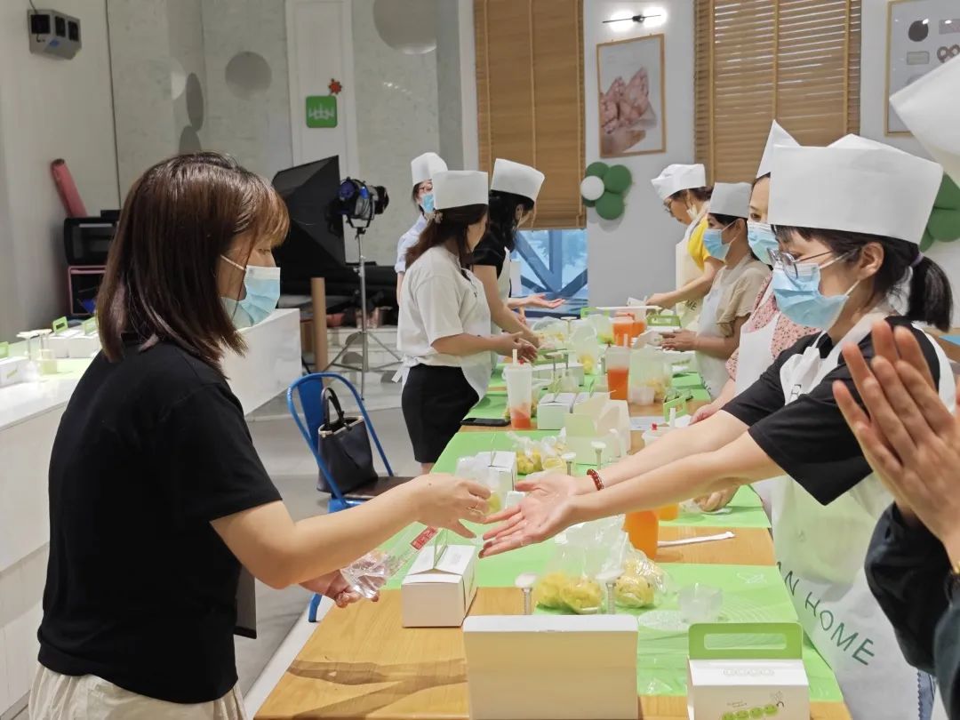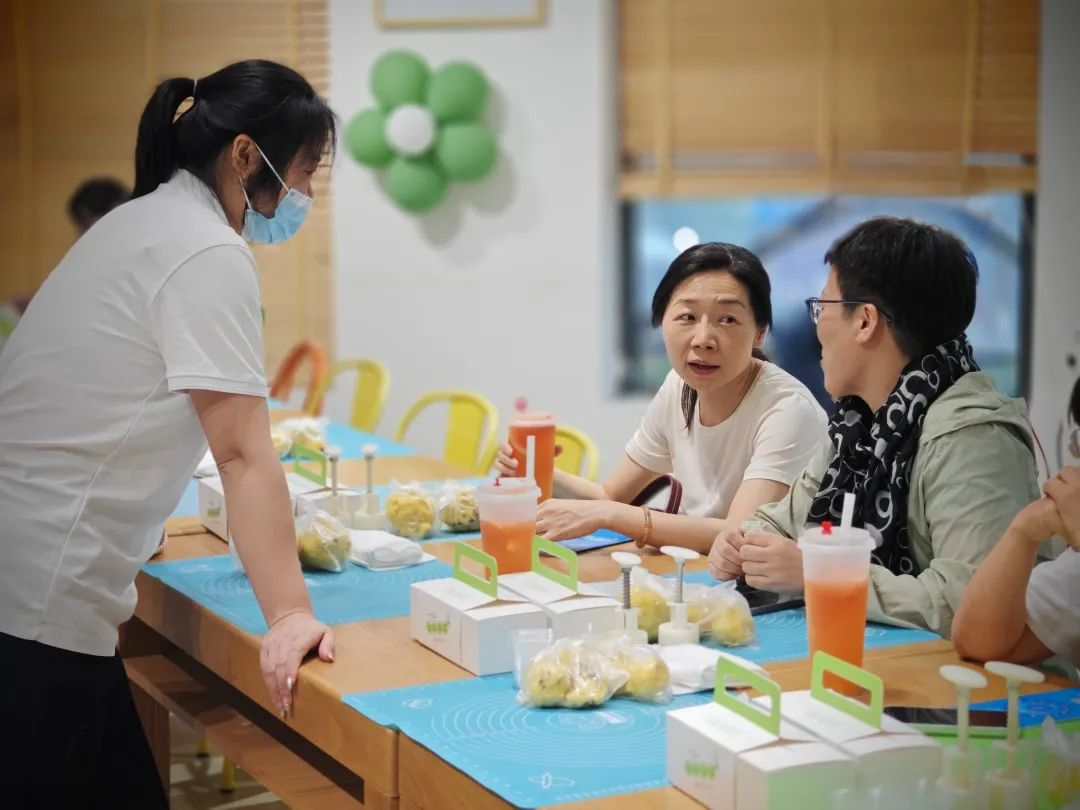 過程中,大家熱情高漲,很快就做出一個個精美好看的綠豆糕?;顒咏Y束,將包裝好的綠豆糕帶給家人朋友分享。