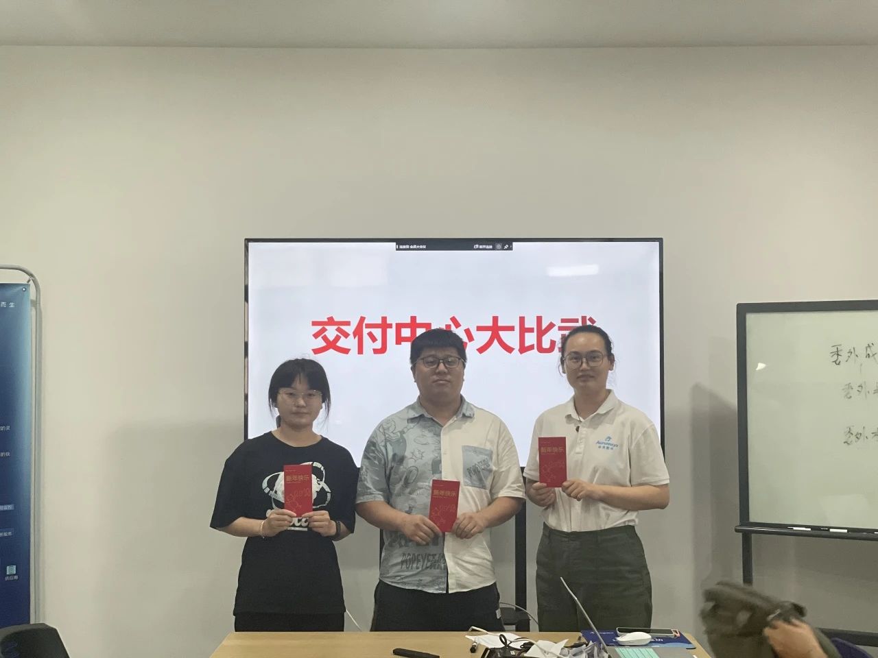 比武從上午8點一直持續(xù)到下午4點,經(jīng)過8小時的角逐,最終產(chǎn)生了得分最高的三名小伙伴,他們的技術過硬,積極向上,由我們的唐于老師給各位頒發(fā)紅包。交付中心的伙伴們,讓我們一起奔跑追上未來,共創(chuàng)交付中心更好的明天。