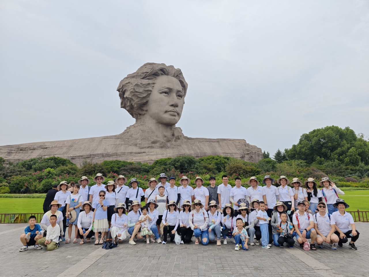 網(wǎng)紅城市長沙是第一站,大家乘坐電瓶車來到橘子洲頭,感受毛主席站在橘子洲頭發(fā)出的“問蒼茫大地,誰主沉浮”的天問,領(lǐng)略洲上的優(yōu)美景色。隨后大家一起在毛主席紀念雕像前留下合影。