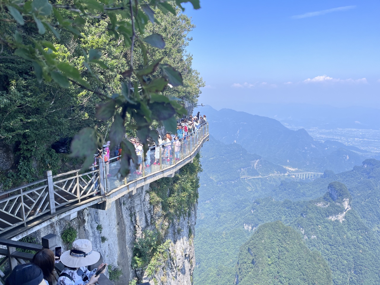 第四天,驅(qū)車前往張家界新傳奇——天門山,這里集奇、特、神與一體。大家乘坐世界最長的單線循環(huán)式高山客運索道奔赴山頂,一步登天,舉世無雙,俯瞰張家界全景,感嘆九曲通天的空中花園;大小朋友一起踏上懸空玻璃棧道,體驗高空極限;天門洞讓人感受到了大自然的鬼斧神工,無詞形容,唯有壯觀。